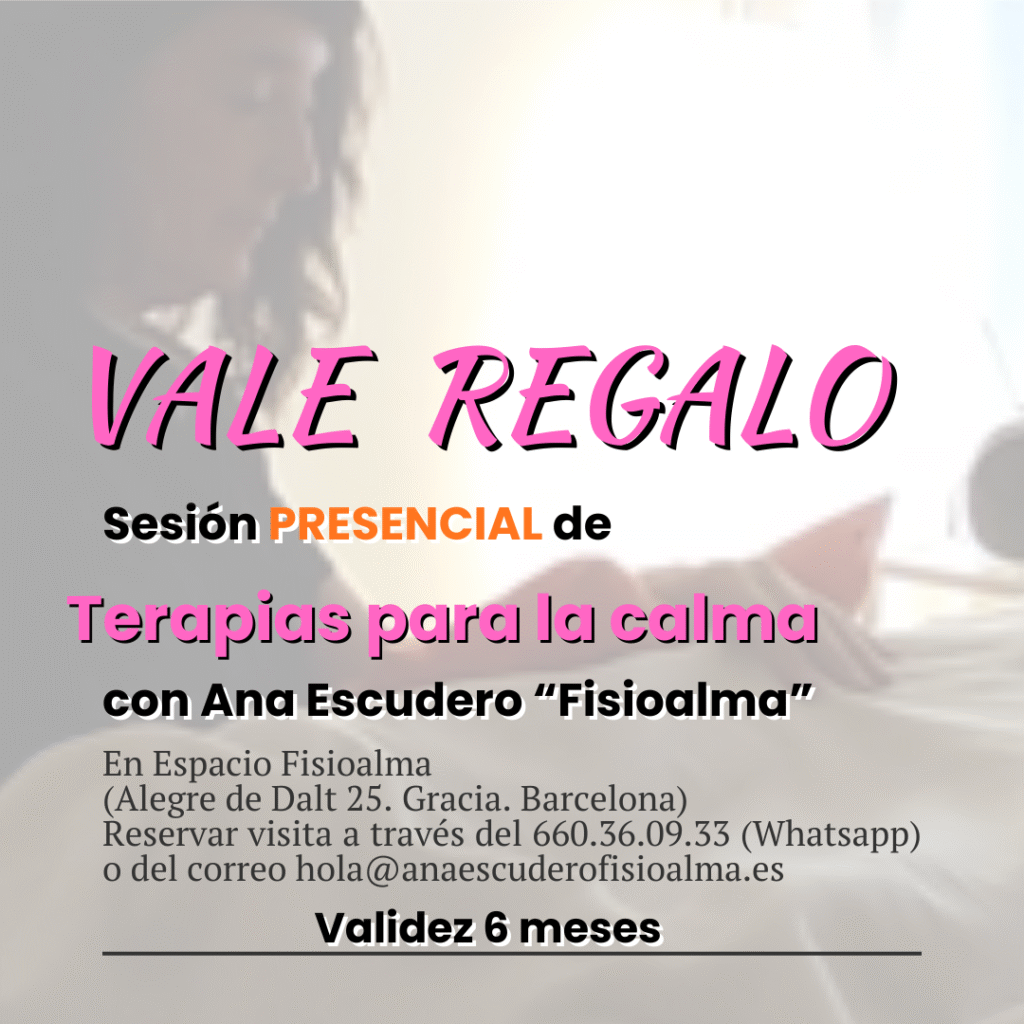 Los vales regalo presenciales se pueden utilizar para mi consulta Espacio Fisioalma situada en el Barrio de Gracia de Barcelona. Las sesiones pueden ser los Lunes (mañana y tarde), Martes (mañana), Jueves (mañana) Viernes (mañana y, ocasionalmente tardes).
